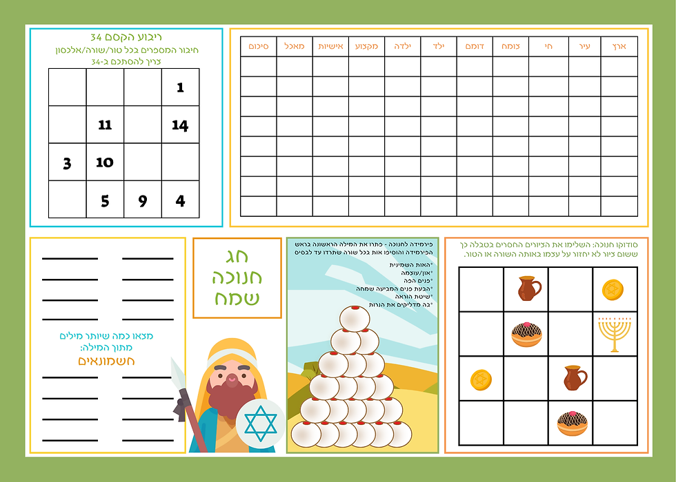 מאירים את שולחן החג עם חידות, צביעה ואתגרי חשיבה.
